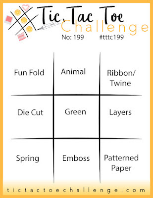 Finally, it's for the Tic Tac Toe Challenge#199 here. I went across the bottom row with spring, emboss and patterned paper.