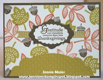 This fall card was made for two challenges. First, I used the Stamping 411 Sketch#271 here.