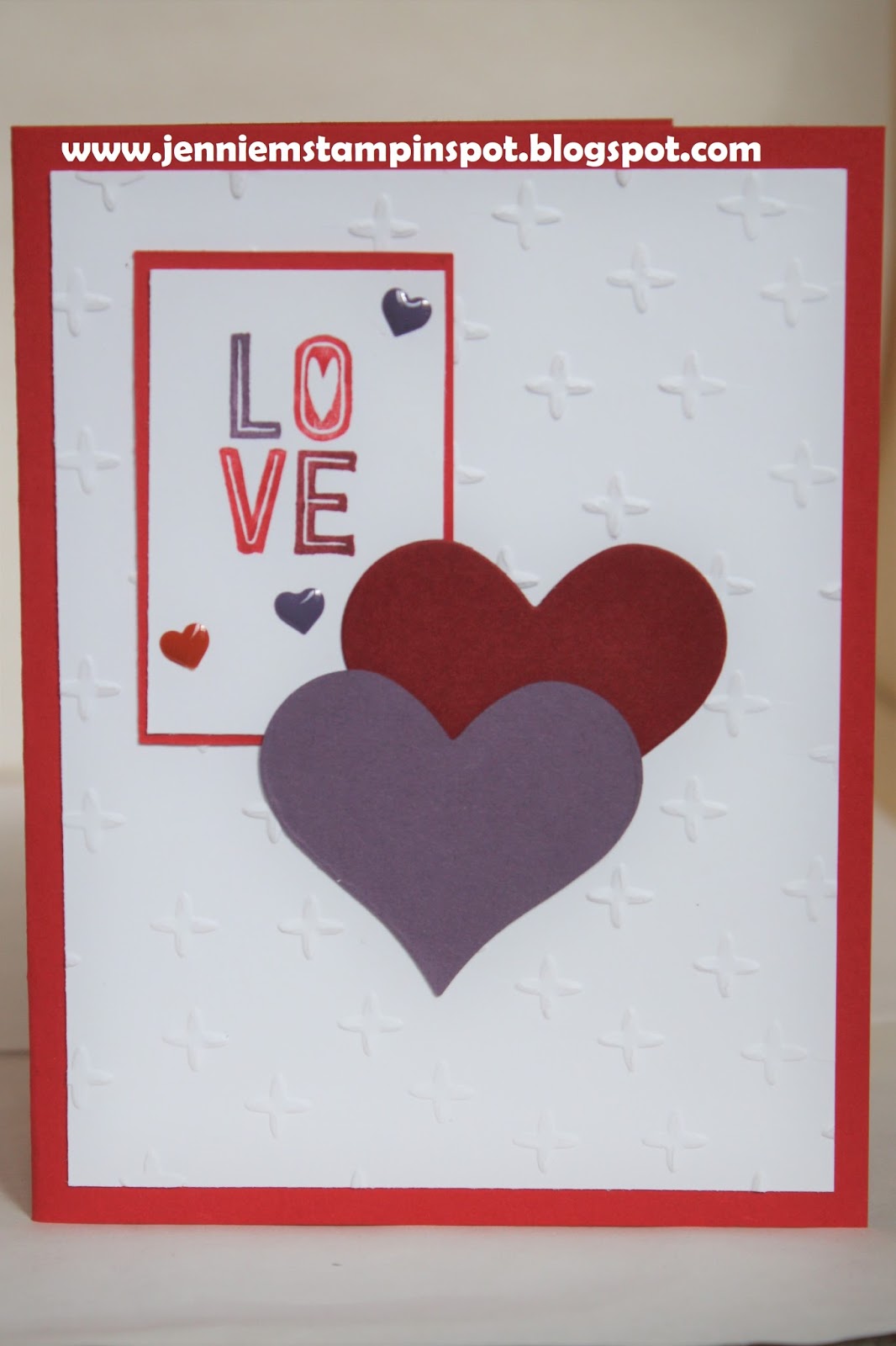 And second, the color challenge from Hand Stamped Sentiments#282 here. The colors to use are Real Red, Perfect Plum and Cherry Cobbler.