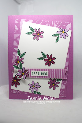Second, the colors are for Just Add Ink#179 here. The colors to use are Fresh Freesia, Petunia Pop, Berry Burst and Shaded Spruce.